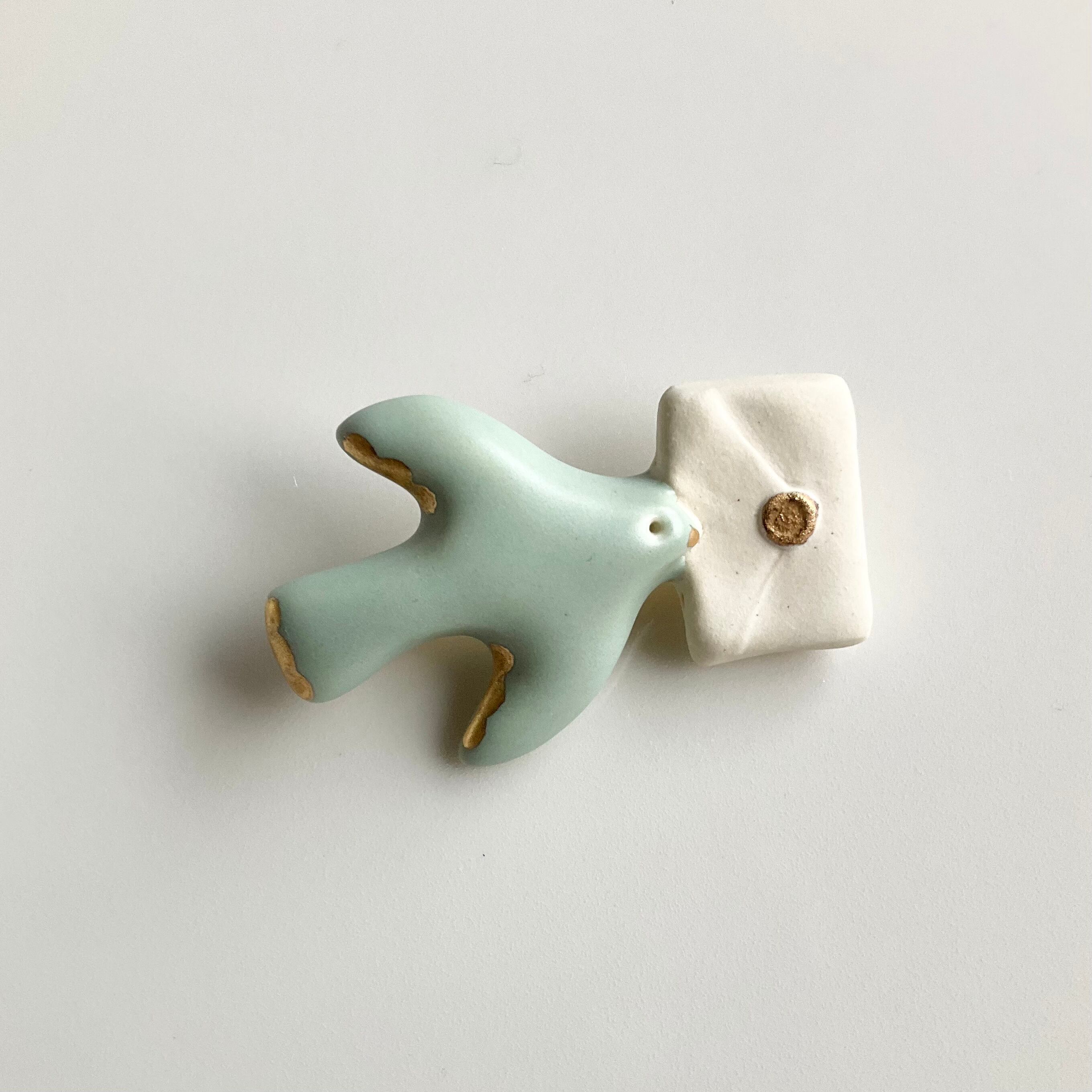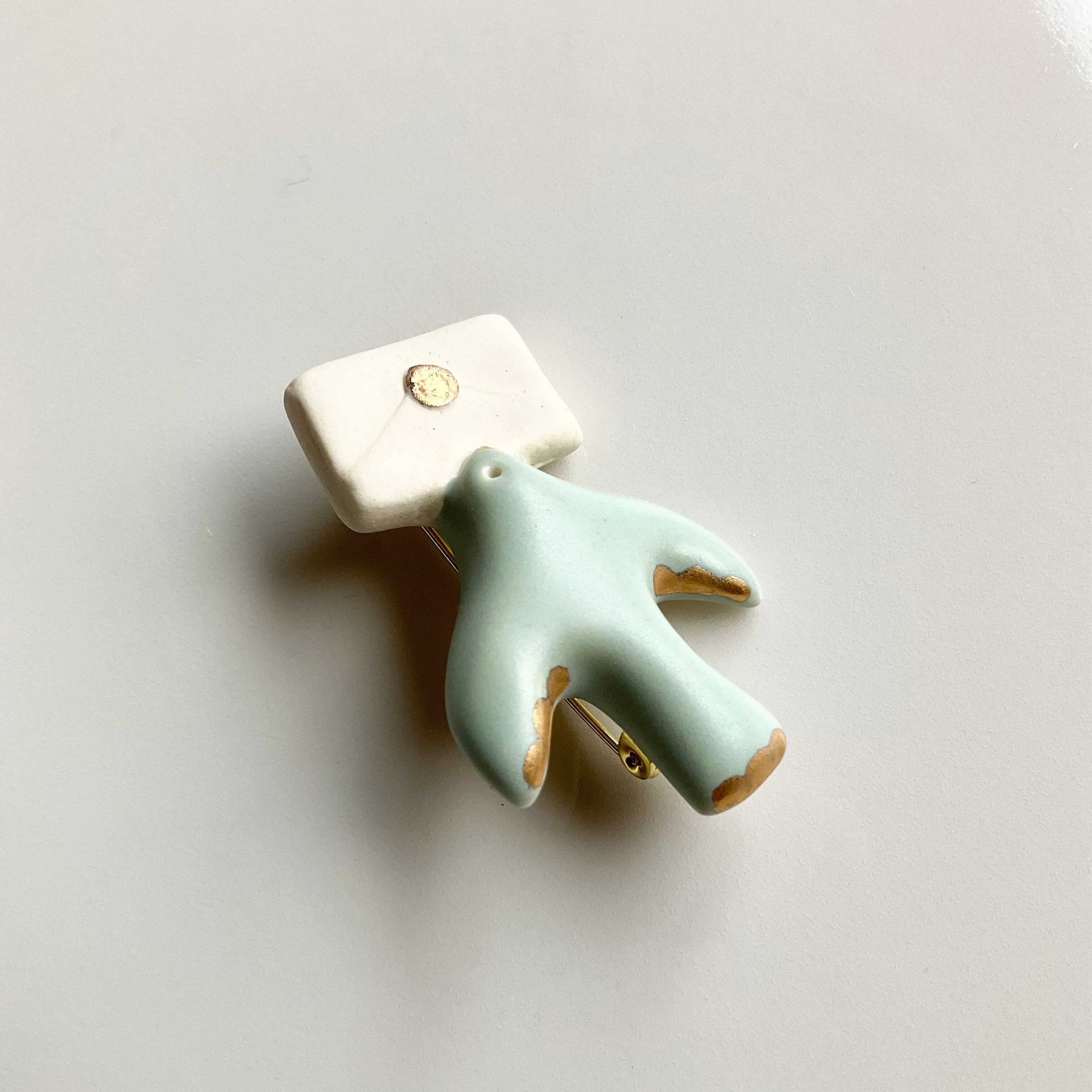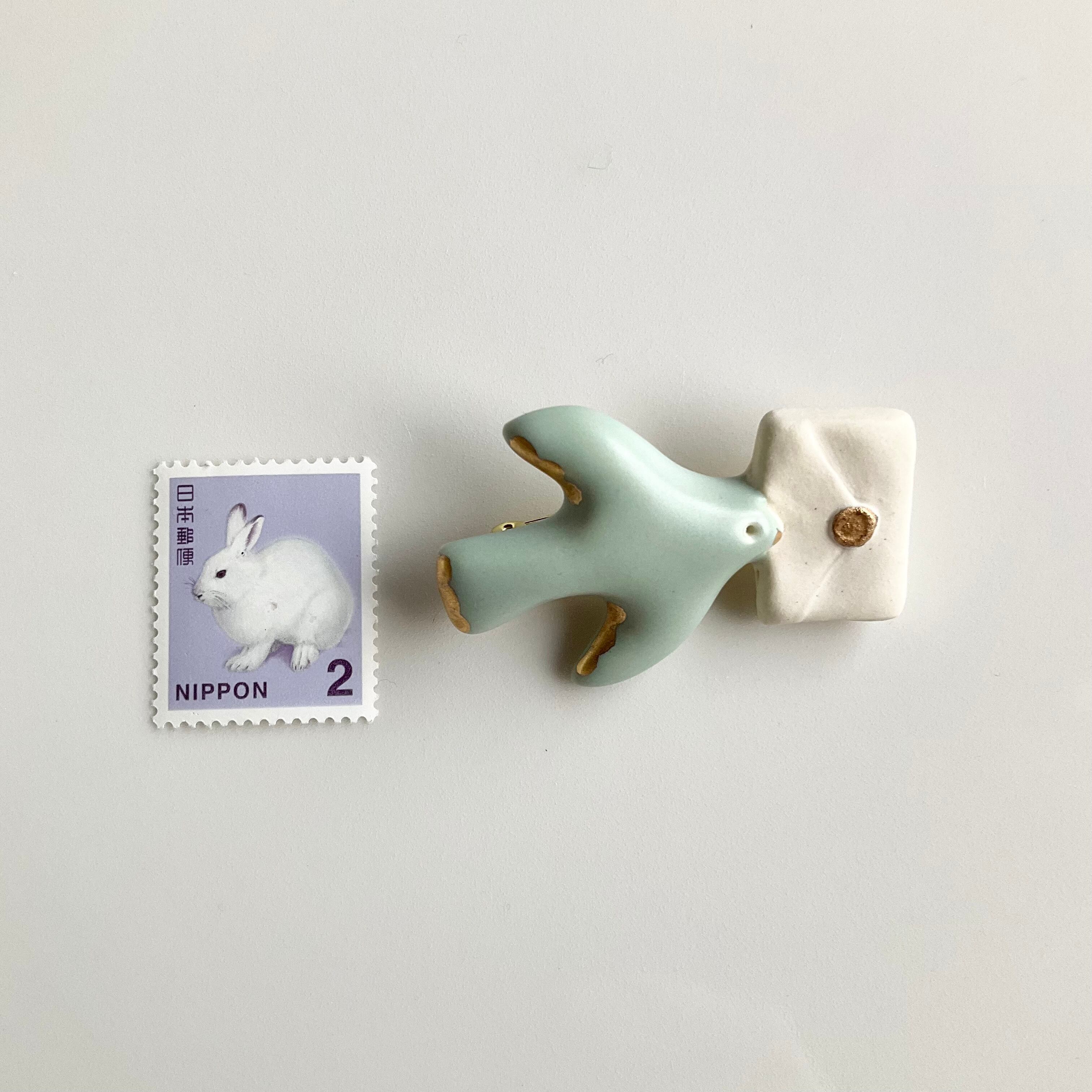 陶器 / ブローチ / 陶器ブローチ / 鳥 / 手紙