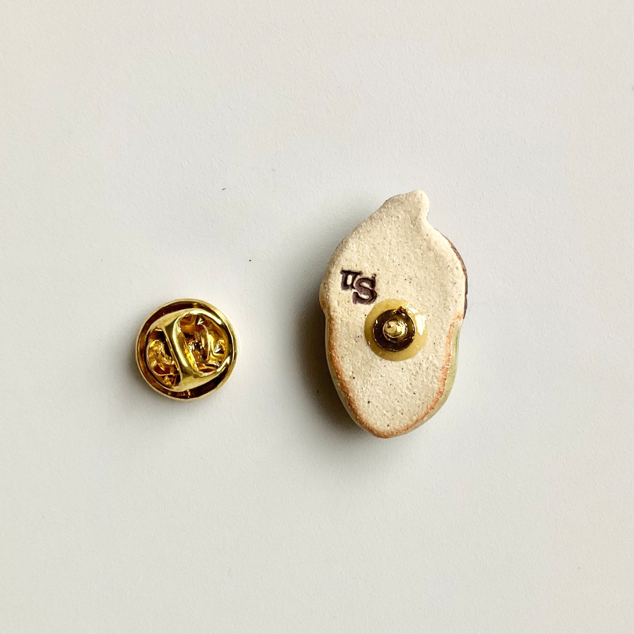 *シンプルな装いや帽子、バッグのアクセントに。ニットやマフラー・ストール、コートなどの毛足のある素材と陶のツヤ感はとても相性が良いです。